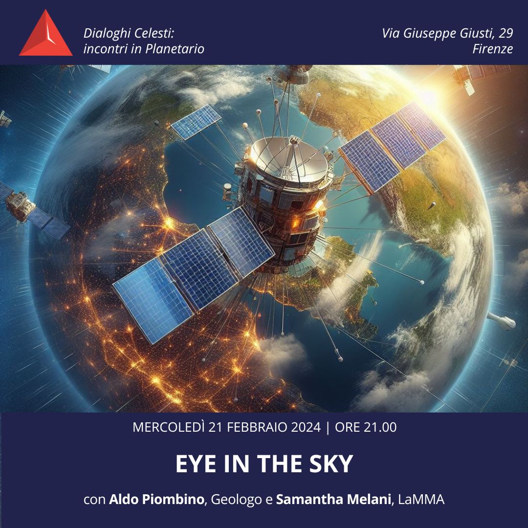 Mercoledì 21 febbraio tornano i “Dialoghi Celesti” in Planetario con una conferenza a cura del geologo Aldo Piombino e Samantha Melano del LAMMA dal titolo “EYE IN THE SKY”.